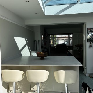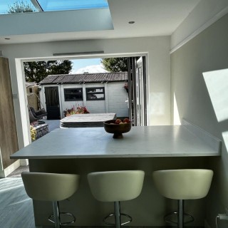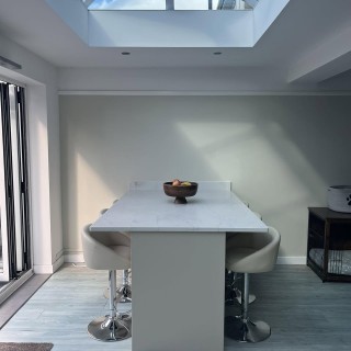 A kitchen island is perfect for entertaining, a super place to sit and admire your garden, as well as a super space to do all your school marking! This island is from Symphony's New York range in Paint to Order Stone. This island has plenty of storage and features the new 30mm Capri Velluto (matt) quartz. This gives the quartz a matt textured feel.